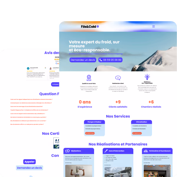 Nous concevons des sites pour les entreprises de climatisation qui sont pensés à la fois pour rassurer vos clients et pour bien se positionner sur vos recherches locales stratégiques.